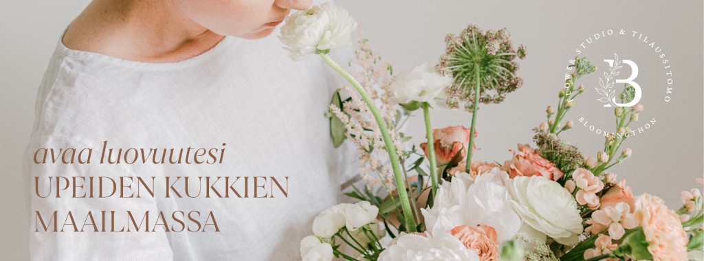 Osallistuin ensimmäiselle Bloomingthonin kurssille ystävän vinkistä. Mainoksen nähdessäni workshop vaikutti aivan ihanalta, ja paikan päällä se vielä ylitti odotukset. Hyvässä ohjauksessa ja laadukkailla materiaaleilla oli helppo saada aikaan onnistunut työ. Kädet syyhysi päästä seuraavallekin kurssille kotoisaan kahvilamiljööseen kukkien äärelle käyttämään luovuutta. Kotiinviemisenä inspiraatiota, hyvää mieltä, uusia taitoa ja ihan itse tehty kranssi.